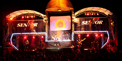 dengan menggunakan panggung yang dibuat dari 2 buah truk ini tidak